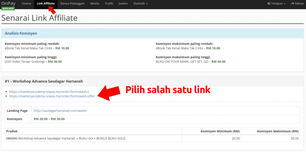 Di sini akan ada beberapa link affiliate lain di bawah kelolaan kami. Pilih produk / seminar yang anda ingin promosikan.